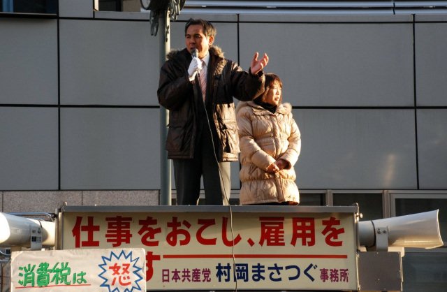 土曜の午前と日曜の終日は新春まちかど演説会、私の訴えにも力が入りました。何故なら、6日発表された社会保障と税の一体改革の素案では、柱は消費税増税であり、2014年に8%、2015年10%の増税。一方で、大企業・大金持ちには新たに1兆7千億円の減税、一機100億円の戦闘機を42機購入するなど浪費は拡大です。
