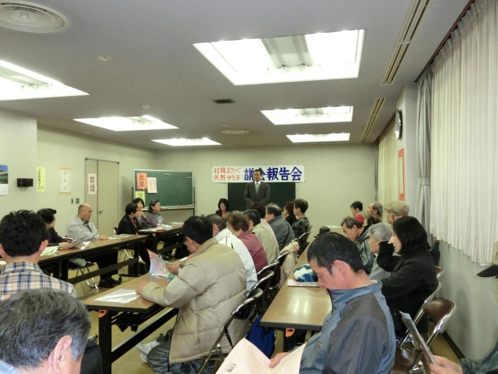 22日、横曽根地域で議会報告会が開かれ、市議会報告を矢野ゆき子市議が、県議会報告を村岡が行いました。私は県立小児医療センター移転問題等の県政問題とともに、今、国会で大問題になっている消費税増税問題についてお話しさせていただきました。