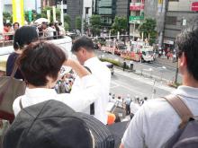 応援弁士も医師、弁護士、若いママ、労組の委員長など多士済々。日本共産党を代表しての井上哲参議院議員の訴えの後、候補者から「原発ゼロを埼玉から発信しよう!」「くらし応援の県政にしよう!」の力強い決意に「よし!」「そうだ!」の声が飛びます。熱気あふれるとても良い雰囲気の街頭演説会となりました。