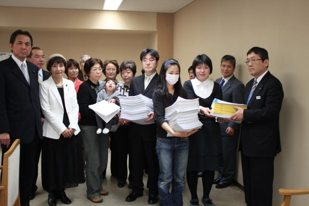 県病院局へ38400筆の署名を提出する患者家族の皆さん