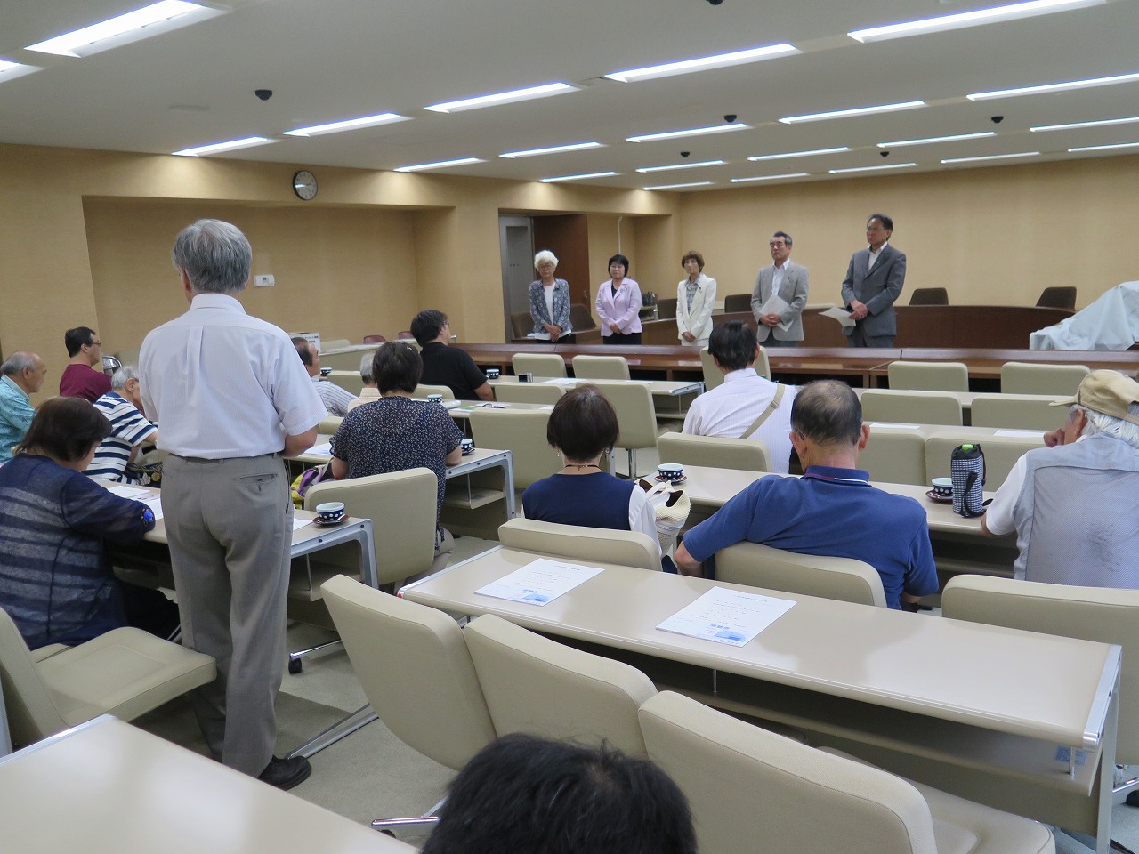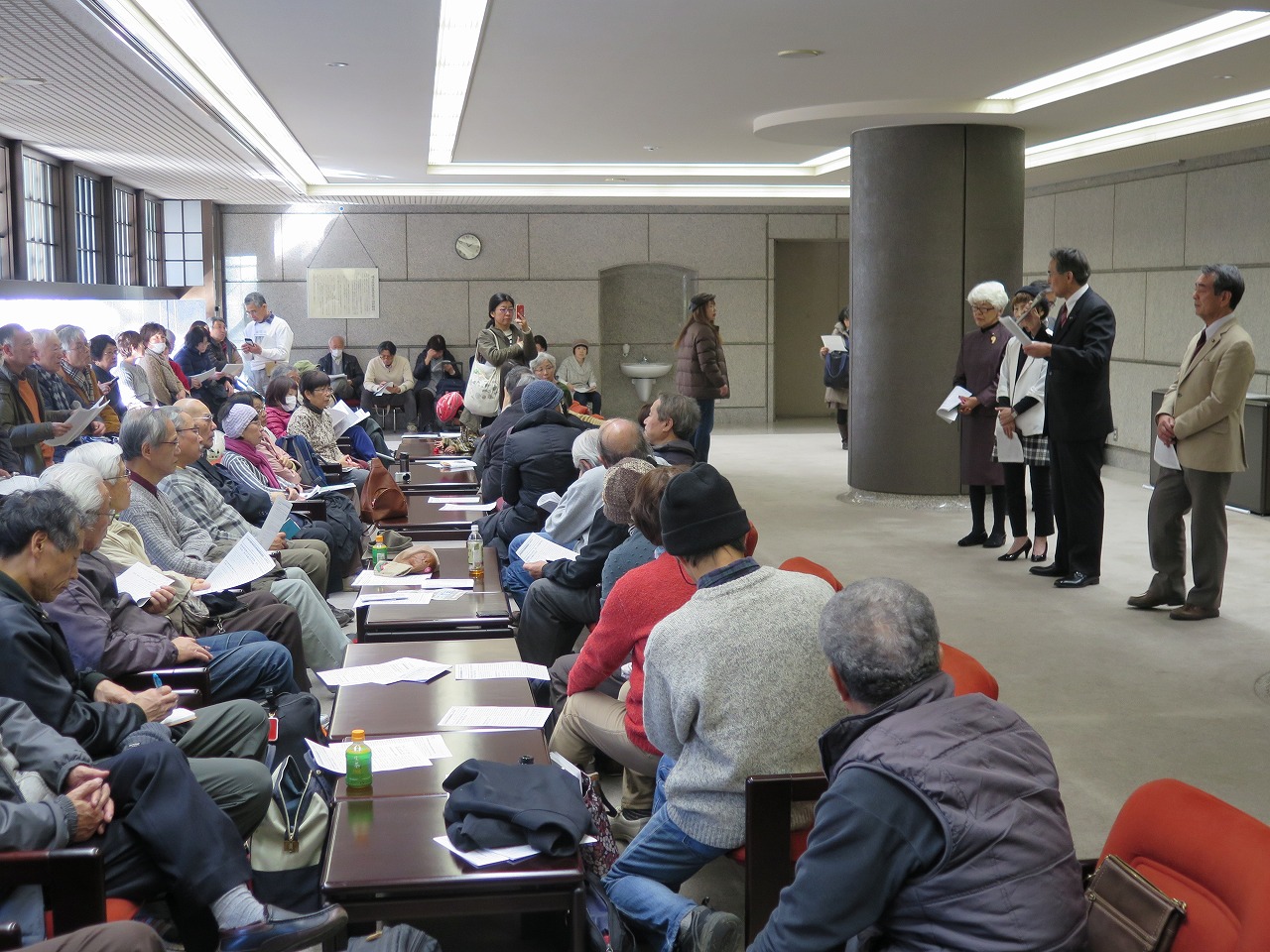 交流会場となった議事堂議面サロンには、民進党と共産党の県議団が参加し、「なぜこんな意見書が採択されたのか、その背景や経緯は」「抗議文はどう扱われるのか」などの質問も出され、私どもで分かる範囲で回答もし、参加者と連帯して今後の取り組みを話し合いました。