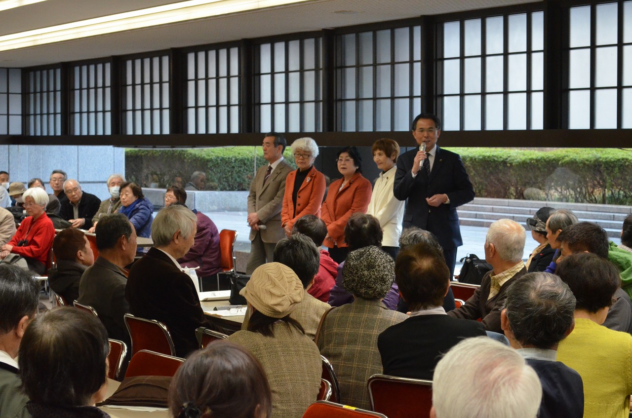 議長への抗議文提出後、議面サロンでの交流に参加した党県議団